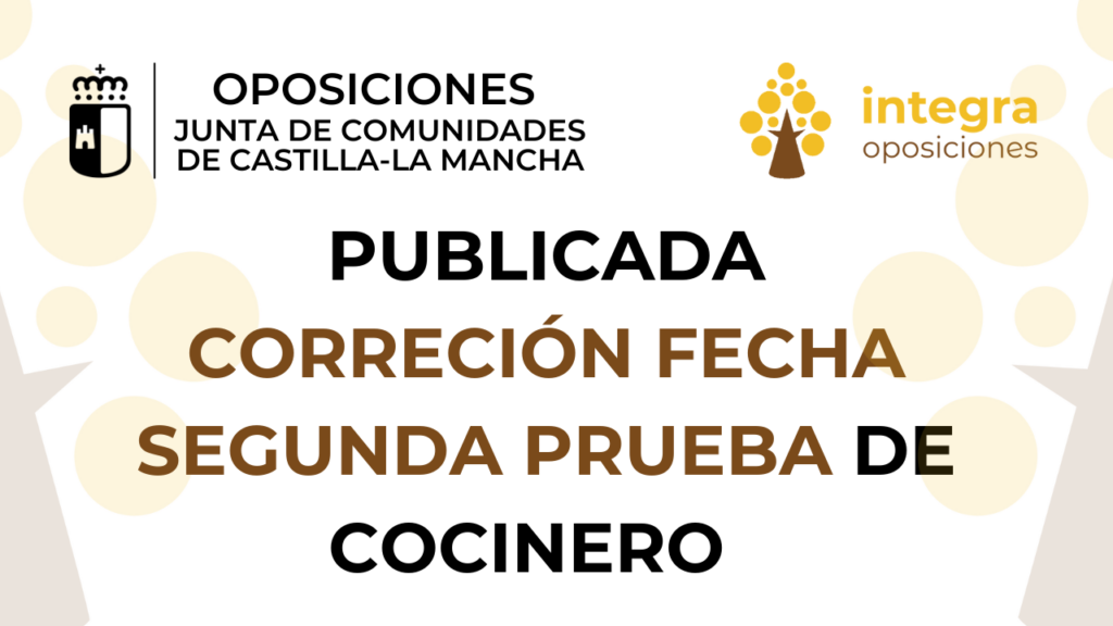 - Cocinero JJCM: Correción de la fecha del segundo ejercicio, prueba situacionalEl Tribunal Calificador de las pruebas selectivas de la Junta de Comunidades de Castilla -La Mancha ha publicado la corrección de la fecha de la segunda prueba, de Cocinero, turno libre. El cambio es: donde dice sábado 25 enero de 2026 debe decir domingo 25 de enero de 2026. Si tu objetivo es aprobar una… Lee más: Cocinero JJCM: Correción de la fecha del segundo ejercicio, prueba situacional