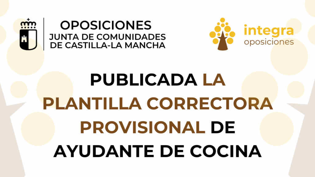 - Ayudante de Cocina JCCM: Publicada la plantilla correctora provisionalEl Tribunal Calificador de las pruebas selectivas de la Junta de Comunidades de Castilla -La Mancha ha publicado la plantilla correctora provisional de Ayudante de Cocina, turno libre. Si tu objetivo es superar una oposición, entra en nuestra web. La motivación es lo que te pone en marcha, el hábito es lo que hace que… Lee más: Ayudante de Cocina JCCM: Publicada la plantilla correctora provisional
