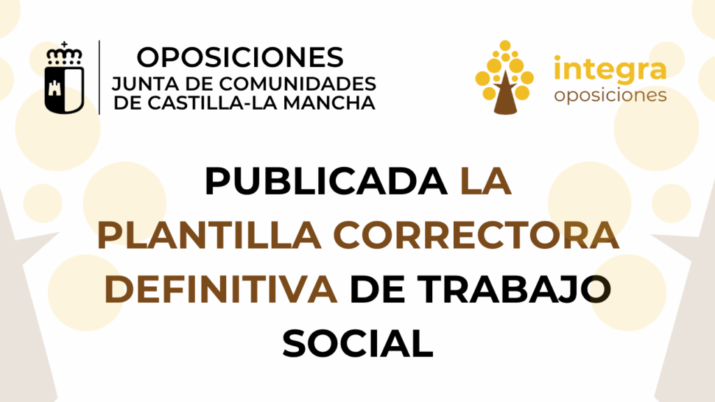 - Trabajo Social JCCM: Publicada plantilla correctora definitivaEl Tribunal Calificador de las pruebas selectivas de la Junta de Comunidades de Castilla -La Mancha ha publicado la plantilla correctora definitiva de Trabajo Social, turno libre. Si tu objetivo es aprobar una oposición, entra en nuestra web. Sorprendernos por algo es el primer paso de la mente hacia el descubrimiento Luis Pasteur