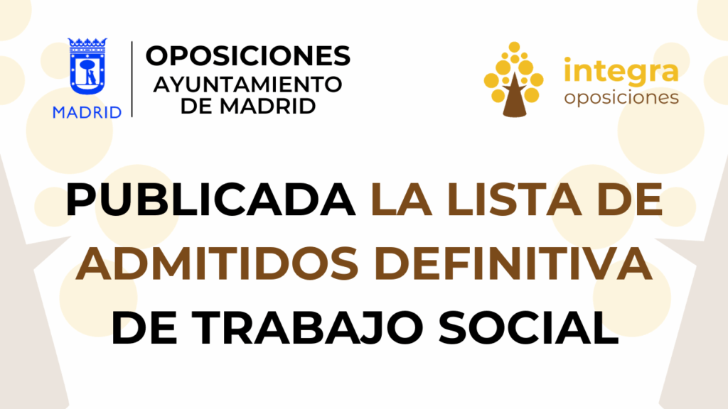 - Trabajo Social Ayuntamiento de Madrid: Publicada lista definitiva de admitidosEl Tribunal Calificador de las pruebas selectivas del Ayuntamiento de Madrid, ha publicado la lista definitiva de admitidos, de Trabajo Social. Si estás pensando en conseguir aprobar una oposición, entra en nuestra web. Huyo de lo que sigue detrás de mí, y sigo lo que huye delante de mí. Publio Ovidio Masón