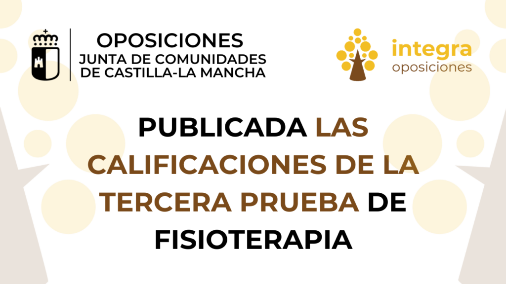 - Fisioterapia JCCM: Publicadas las calificaciones de la tercera pruebaEl Tribunal Calificador de las pruebas selectivas de la Junta de Comunidades de Castilla -La Mancha ha publicado las calificaciones de la tercera prueba de Fisioterapia, turno libre. Más del 35 % de las personas aprobadas son alumnas y alumnos nuestros, incluido quien ha obtenido la mejor calificación ¡Enhorabuena a todos! Contra el presente acuerdo,… Lee más: Fisioterapia JCCM: Publicadas las calificaciones de la tercera prueba