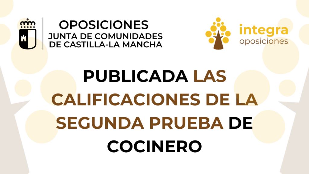 - Cocinero JCCM: Publicada las calificaciones de la segunda pruebaEl Tribunal Calificador de las pruebas selectivas de la Junta de Comunidades de Castilla -La Mancha, ha publicado que las calificaciones de la segunda prueba, de Cocinero, turno libre. Informar a las personas presentadas que la puntuación mínima para superar la prueba se obtiene con17,5 puntos, según ha acordado este Tribunal de conformidad con la… Lee más: Cocinero JCCM: Publicada las calificaciones de la segunda prueba