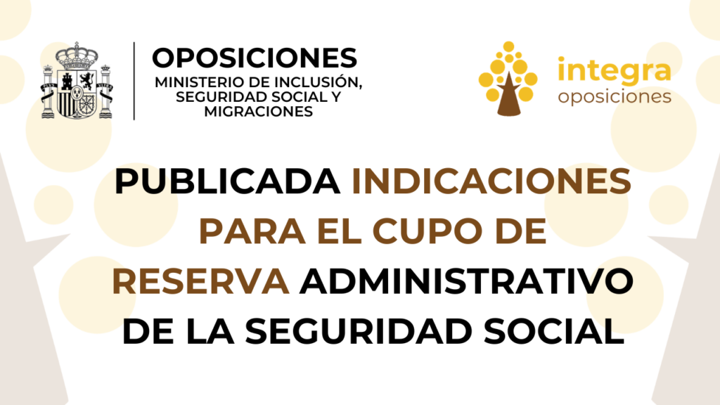 - Administrativo de la Seguridad Social:Indicciones para las pruebas selectivas del cupo de reservaEl Ministerio de Inclusión, Seguridad Social y Migraciones ha publicado las indicaciones para la participación en las pruebas selectivas mediante cupo de reserva del proceso selectivo de Administrativo de la Seguridad Social. Durante el plazo de subsanación de solicitudes, que comienza el 23 de marzo y finaliza el 7 de abril, las personas interesadas podrán… Lee más: Administrativo de la Seguridad Social:Indicciones para las pruebas selectivas del cupo de reserva