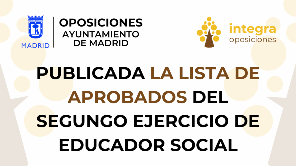 Educación Social Ayuntamiento de Madrid: Publicada la lista de aprobados del segundo ejercicio Compartir en XSi quieres tener opciones reales de superarlo, sabemos cómo ayudarte para conseguir tu plaza, entra en nuestra web.