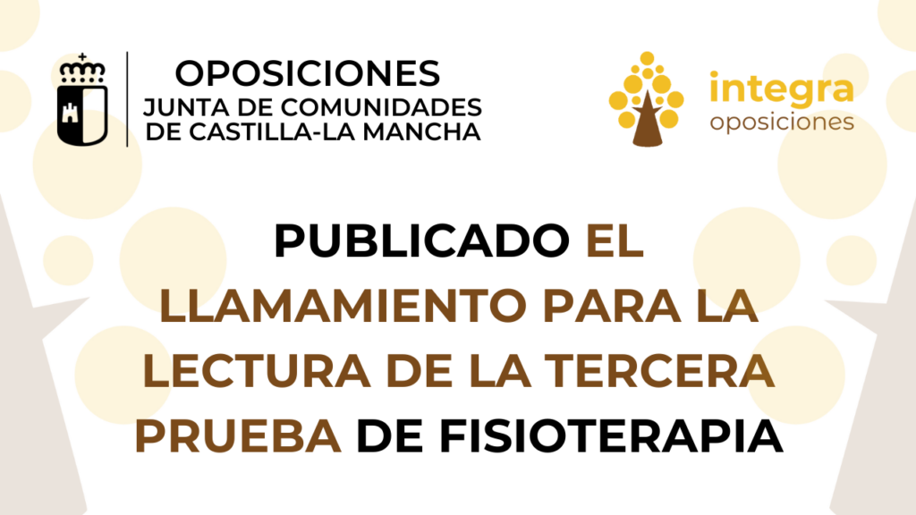 El Tribunal Calificador de las pruebas selectivas de la Junta de Comunidades de Castilla -La Mancha ha publicado la el llamamiento para la lectura de la tercera prueba deFisioterapia, turno libre.