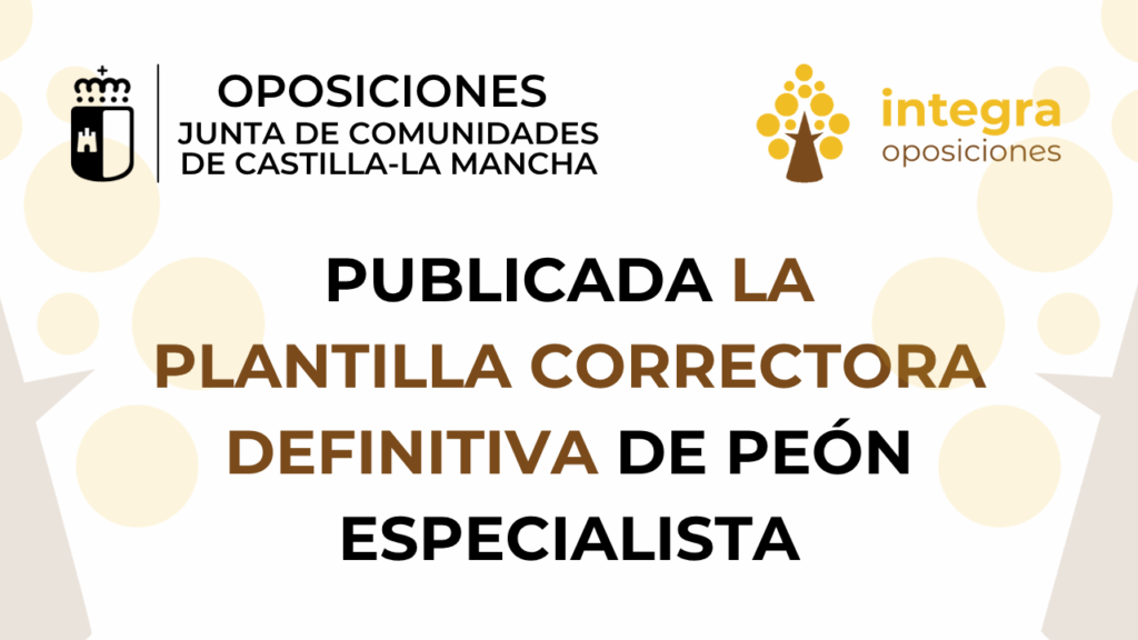 El Tribunal Calificador de las pruebas selectivas de la Junta de Comunidades de Castilla -La Mancha ha publicado la plantilla correctora definitiva de Peón Especialista, acceso libre.