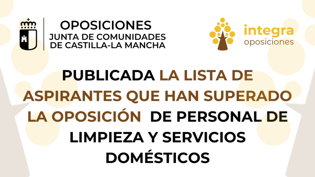 El Tribunal Calificador de las pruebas selectivas de la Junta de Comunidades de Castilla -La Mancha ha publicado la lista de aspirantes que han superado la oposición de Personal de Limpieza y Servicios Domésticos, turno libre.