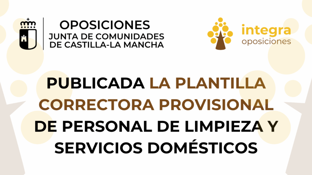 El Tribunal Calificador de las pruebas selectivas de la Junta de Comunidades de Castilla -La Mancha ha publicado la plantilla correctora provisional de Personal de Limpieza y Servicios Domésticos, turno libre.