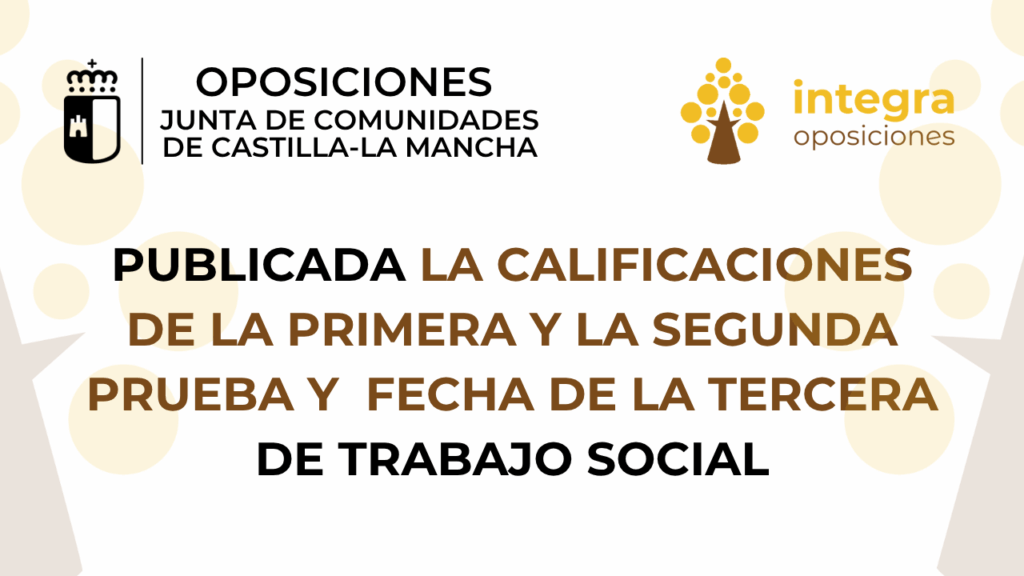 El Tribunal Calificador de las pruebas selectivas de la Junta de Comunidades de Castilla -La Mancha ha publicado la las calificaciones de la primera y segunda prueba y la fecha de la tercera prueba de Trabajo Social, turno libre.