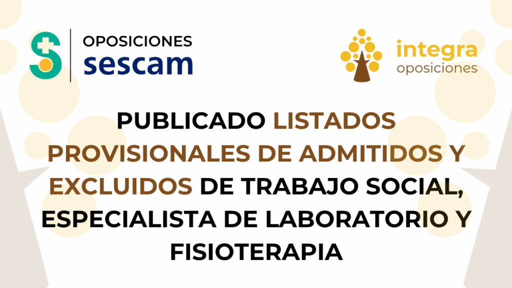 La Dirección General de Recursos Humanos del SESCAM, ha publicado la lista provisional de admitidos y excluidos de la convocatoria de Trabajo Social y Especialista de laboratorio, acceso libre.